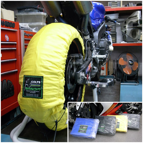 知る人ぞ知るMOTO GPを始めとしたレーシングチーム御用達のCOLTS社の高性能タイヤウォーマー。もちろんYSP横浜南でも使っています。オススメです。